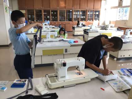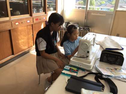 6年生がトートバッグを作っていました。
