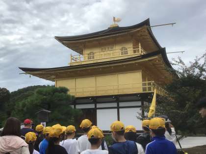 奇跡的に人の少ない金閣寺でした。写真屋さんに班ごとに写真を撮ってもらいました。心配されていた☔️も降らず、昼食会場に向かいます。