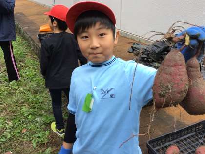 1,2年生の子たちは大喜びでした。収穫したイモは、トヨタの森での学習で、焼き芋にしていただく予定です。