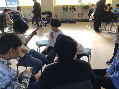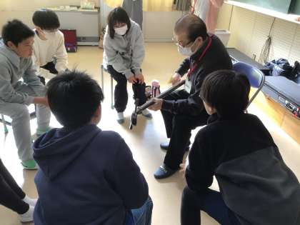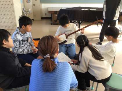 5,6年生を対象に、三味線に触れる体験学習が行われました。