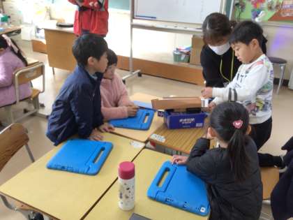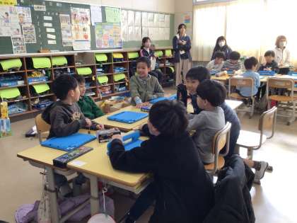 1年生が生活科で、おもちゃ作りについて学習しました。