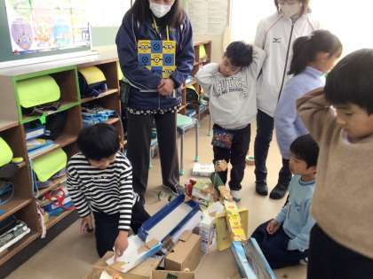 今回は作ったおもちゃを、友達に紹介し、遊んでもらうものでした。