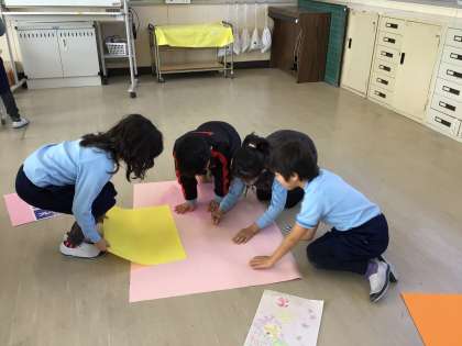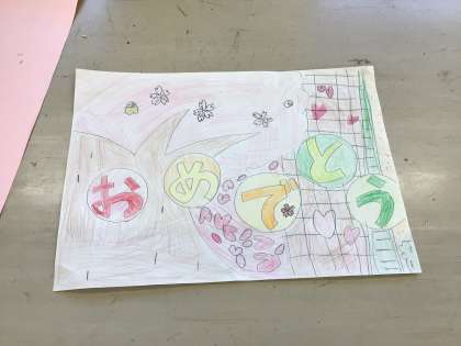 2年生は、卒業生を祝う会で使用する掲示物を作っていました。