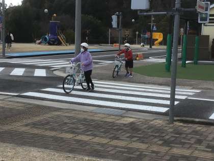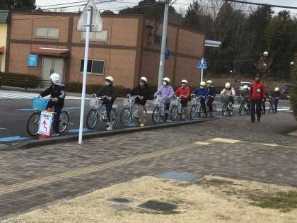 4年生の子たちが、交通安全学習センターに行って、交通安全について、勉強してきました。自転車の安全な乗り方を教えてもらい、実際に乗って、練習しました。どの子も真剣な表情、交通安全に気を付けて、練習していました。