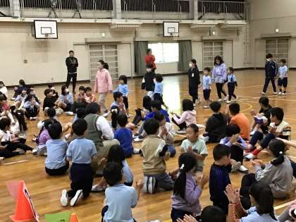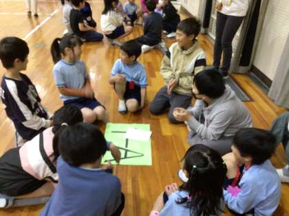 縦割り班に分かれて自己紹介やゲームをしました。難しいところは、6年生が優しくサポートしていました。