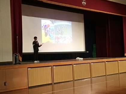 学校紹介は、先生の紹介、ビオトープ、ヤゴ救出について、説明してくれました。5つの丘についてのクイズ、ビオトープに関するクイズも行いました。