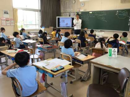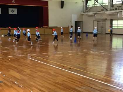 2年生は道徳、5年生はキャンプの出し物の練習をしていました。
