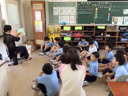 どの子も座って本を見つめながら、お話に聞きいっていました。