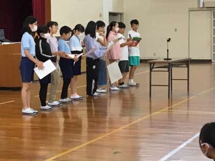 図書委員会からは「図書館おいでん週間」について、企画エコ委員会からは、ゴミの分別について発表がありました。また、夏休みおもしろ講座について説明もありました。