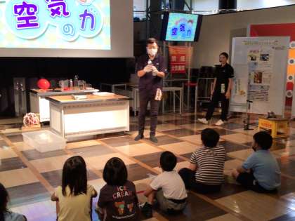 まずは、科学館でプラネタリウムの学習です。月の動きや星座、惑星について学習しました。迫力のある映像に、子どもたちは感動していました。次に空気にまつわる実験を見せていただきました。実験を見ながら、空気のことについて改めて知識を深めていました。