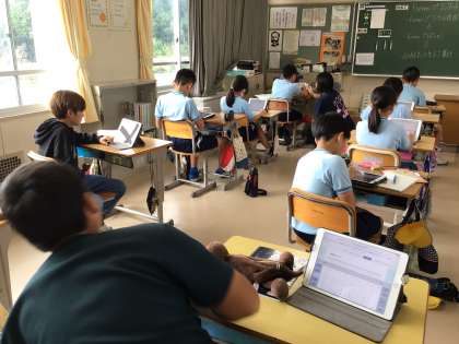 写真は5年生です。formsを使ってクイズを作成しています。