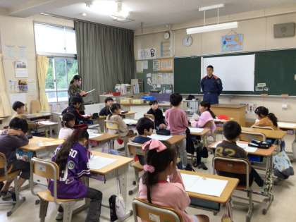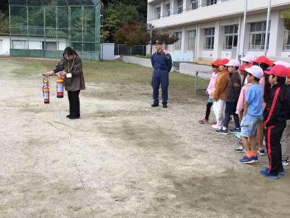 子どもたちの防火意識を高めてもらおうと、消防署の方に教えていただきました。