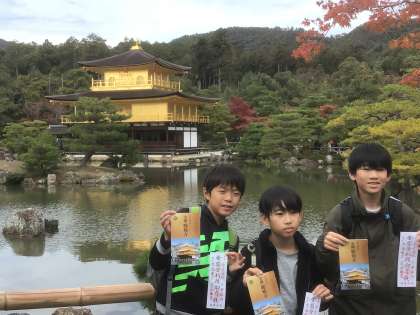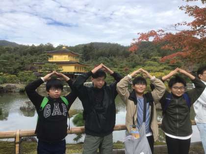 金閣寺は集合写真が撮れないので、班ごとにポーズを決めて、写真撮影。
