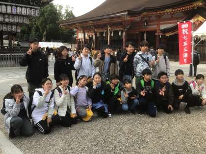 お昼ご飯の後は、最後の見学地、八坂神社です。みんな、それぞれの願いを込めて、お参りしました。今から、帰路につきます。