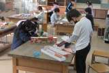のこぎりやきり、かなづち、釘抜きなどの道具を使って作っています。のこぎりや釘抜...