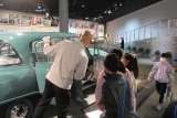 トヨダA型乗用車やトヨペットクラウンの実物を子どもたちは真剣に見入っていました...