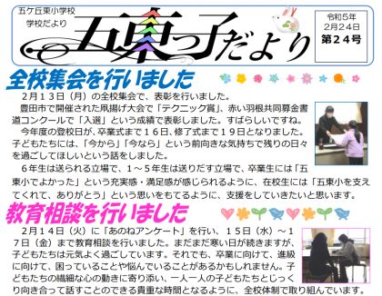 「五東っ子だより24」をアップしました。 ↓ 五東っ子だより 24 最...