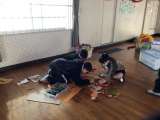 体育館をのぞくと、4年生が飾りつけを一生懸命行っていました。 どの飾りも丁...