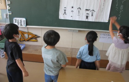 後半は、2・3年生の子が参加しました。早くやりたくて、わくわくしながら始めました...