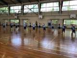体育館での練習風景です。5・6年生が協力し合い、踊りの質を高めています。
