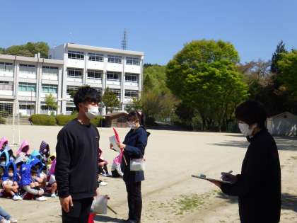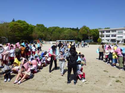 今年最初の避難訓練です。新し教室からの避難経路の確認です。 避難開始から約5分で避難を完了しました。