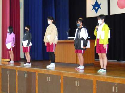 5月10日 委員長任命 公開日 2021/05/11 更新日 2021/05/11 特別活動 委員長を任命しました。任命後に活動内容の紹介、みんなにお願いしたことをはっきりと伝えることができました。力強い「所信表明」でした。