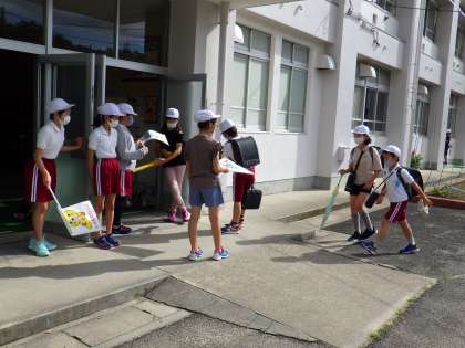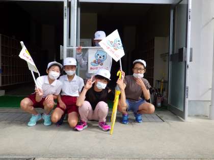毎朝、生活委員さんが児童玄関であいさつ運動をしています。