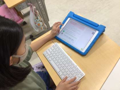 タブレットにキーボードをつないでいます。