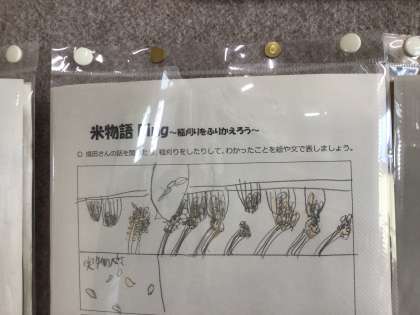 9月16日 6年生稲刈りの振り返り 公開日 2021/09/16 更新日 2021/09/16 各学年から 5年生の教室の掲示です。 稲刈りで長靴が泥の中に埋まったこと、田植えから稲刈りまでのお米を作るまでの苦労について書いてありました。