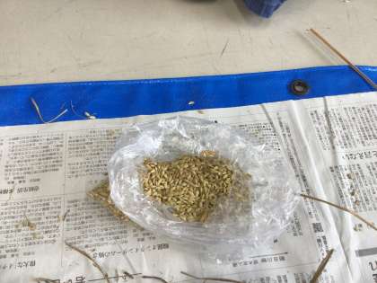 9月30日 5年生 脱穀 公開日 2021/09/30 更新日 2021/09/30 各学年から 5年生が脱穀をしています。 カメムシに食べられて黒い点がついたもみもありました。 ひとつぶひとつぶ手でとっています。 今日は2時間目です。 みんなの米、と言って頑張っていました。 これが終わるともみすりをします。