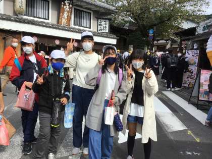 お弁当を食べ終わった班から清水坂で買い物をしました。
