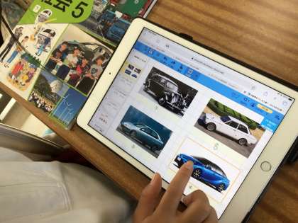 タブレットを使って車の歴史を学びました。