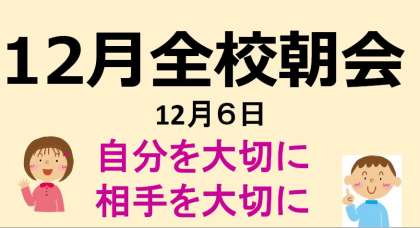 12月の全校朝会で「自分を大切に、友達を大切に」(人権)をテーマに