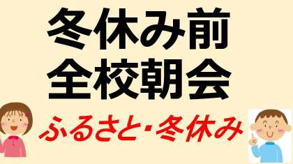冬休前全校朝会 ふるさととは 冬休みの一枚