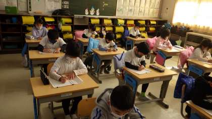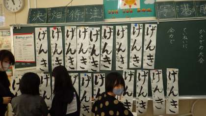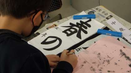 1,2年生は硬筆(えんぴつ)、3〜6年は毛筆です。