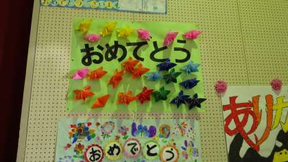 体育館には、各学年が心を込めて作った飾り付けがありました。