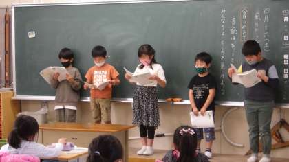 2年生は、国語「くらべてみよう」の勉強です。みんなの前で話すのにちょっぴり緊張したようです。