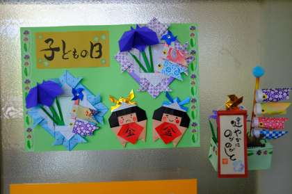 今回は、入り口や窓に5月を感じさせるこいのぼりがたくさん。カウンターの近くには梅雨の時期に向けての飾りが下がっています。