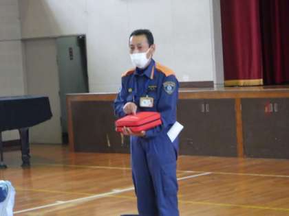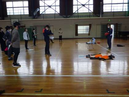 心臓マッサージやAEDの使い方、緊急対応時の役割の確認などを練習しました。
