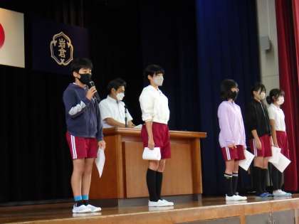 委員会活動は、学校生活をよくしようと5・6年生が取り組んでいます。委員長が抱負を述べ、全校の皆さんに協力をお願いしました。