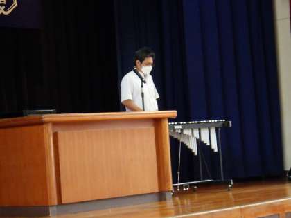 6月6日(月)に、体育館で全校朝会を行いました。