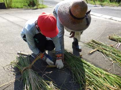 稲を刈ったら、次は稲を束ねて干す作業です。
