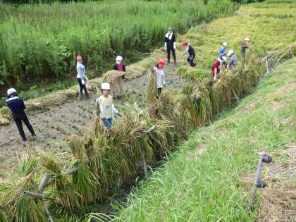 たくさんの稲をかけるのは大変でしたが、稲刈りからはざかけまで1時間半ほどかけて終了しました。