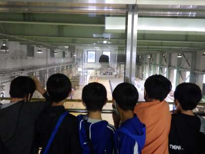 最初の見学は、エコット。市内から集められたごみがどのように処理されていくのか学びました。大きなごみピットを上から眺め、次々と入ってくるごみ収集車やピットの大きさにびっくり。