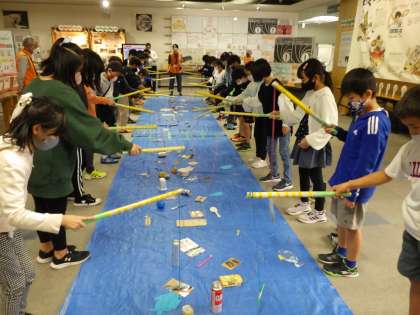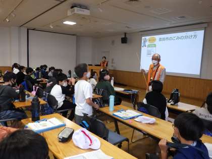 ごみの分別や、リサイクルについても学び、疑問に思ったことを質問していました。