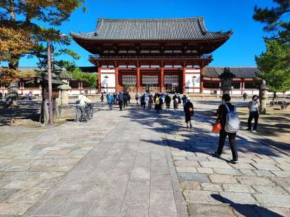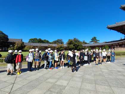 京都を出発して、バスは2日目の見学地の奈良へ向かいました。