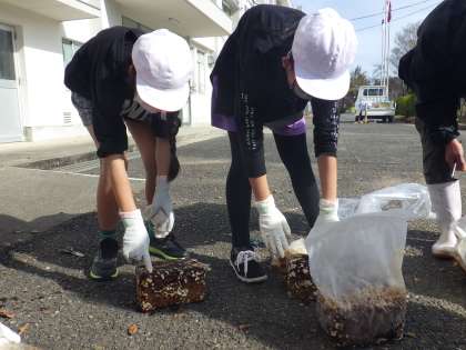 松平の特産 シイタケを育てよう 公開日 2022/12/01 更新日 2022/12/01 特色ある学校づくり推進事業 特色ある学校づくり推進事業だより 5年生は、今年も松平の特産であるシイタケづくりに挑戦します。講師である黒柳さんのお話を聞いてから活動開始。菌床を洗い、運動場南にあるシイタケハウスに並べました。 毎日様子を観察したり、水やりをしたりして、冬休み前まで世話を続けます。キノコがちょっぴり苦手な子も、自分で育てたシイタケをぜひ味わってほしいです。