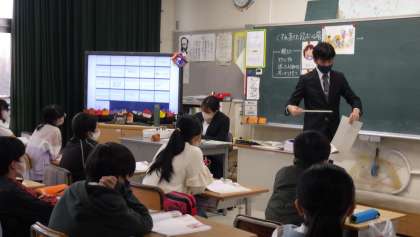 先生たちも学びあい 公開日 2022/12/03 更新日 2022/12/03 職員研修 5年生で、校内職員研修として、道徳の研究授業を行いました。 本校では、授業の力量を高めるために、道徳を中心に授業に取り組んでいます。 自分の思いを深めるだけでなく、友たちとの意見交流を通して新たな気づきをしたり、これからの自分の生き方につなげたりしています。
