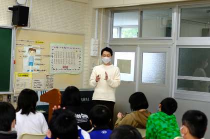 豊田市は市制70周年を記念して、劇場オリジナルアニメ「神在月のこども」とタイアップしています。映画には、小原の四季桜が登場しています。本校では、学年ごとに鑑賞してきましたが、11月30日に5年生が、映画を作成した四戸監督と一緒に、鑑賞会をしました。作品を見た子どもたちの生の感想が聞きたいということで実現したものです。アニメ制作の裏話も聞くことができ、とても貴重な体験となりました。