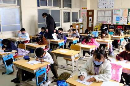 書き初め大会 公開日 2023/01/10 更新日 2023/01/10 学校行事 昨年11月から取り組んできた練習の成果を発揮する書き初め大会を行いました。子どもたちは集中して丁寧に一文字ずつ書いていました。「緊張する〜」と言いながらも、書き始めると表情は真剣そのもの。心を込めて書いた作品を見るのが楽しみです。 今日書いた作品は、1月19日からの校内書初め展にて展示します。授業参観(学習発表会)とあわせてご覧ください。